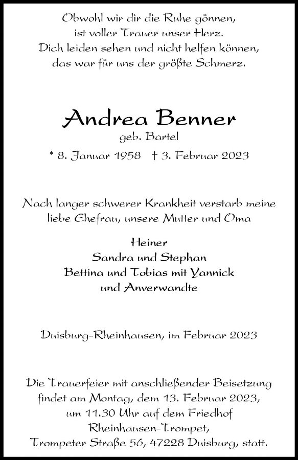 geboren am 8. Januar 1958 in Reutlingen gestorben am 3. Februar 2023 in Duisburg