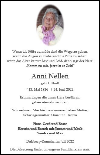 in diesen Tagen fühlen wir mit Ihnen und wünschen Ihnen von Herzen, dass Sie aus den glücklichen Erinnerungen Kraft schöpfen, um positiv in die Zukunft zu gehen. Diese Gedenkseite möge Ihnen dabei helfen, Ihre Trauer zu teilen und das Andenken gemeinsam wachzuhalten.