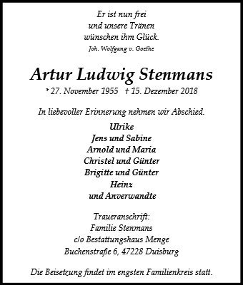 geboren am 27. November 1955 in Duisburg-Mitte gestorben am 15. Dezember 2018 in Duisburg