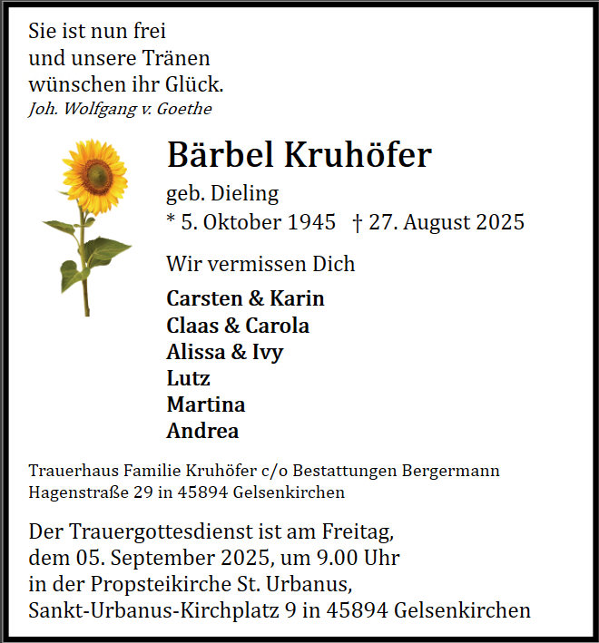 wir wünschen Ihnen von Herzen viel Kraft, dass Sie Menschen um sich haben, die Ihnen in dieser schweren Zeit beistehen und Halt geben. Zusätzlich können Sie auf dieser Gedenkseite Erinnerungen teilen und so das Andenken gemeinsam wachhalten.