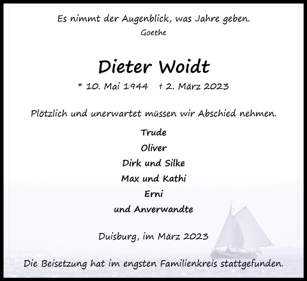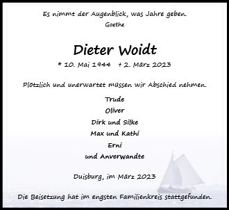 wir wünschen Ihnen von Herzen viel Kraft, dass Sie Menschen um sich haben, die Ihnen in dieser schweren Zeit beistehen und Halt geben. Zusätzlich können Sie auf dieser Gedenkseite Erinnerungen teilen und so das Andenken gemeinsam wachhalten.
