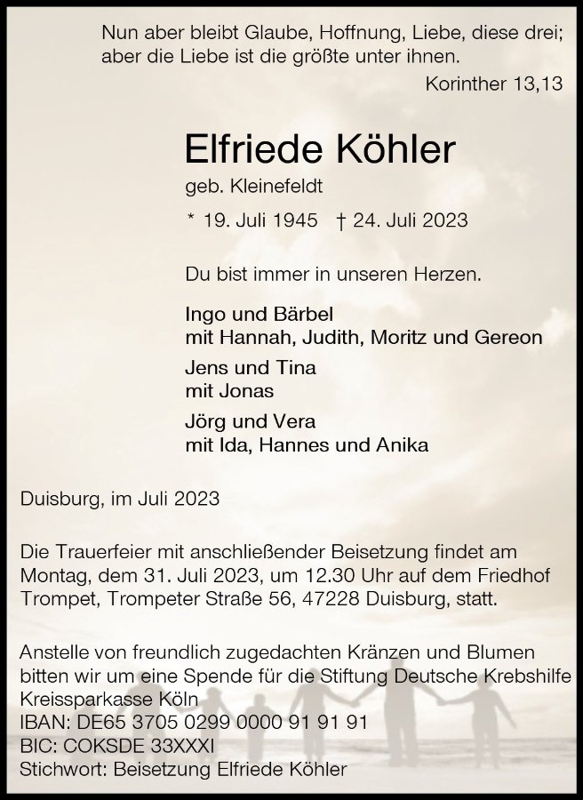 in diesen Tagen fühlen wir mit Ihnen und wünschen Ihnen von Herzen, dass Sie aus den glücklichen Erinnerungen Kraft schöpfen, um positiv in die Zukunft zu gehen. Diese Gedenkseite möge Ihnen dabei helfen, Ihre Trauer zu teilen und das Andenken gemeinsam wachzuhalten.