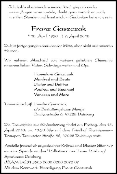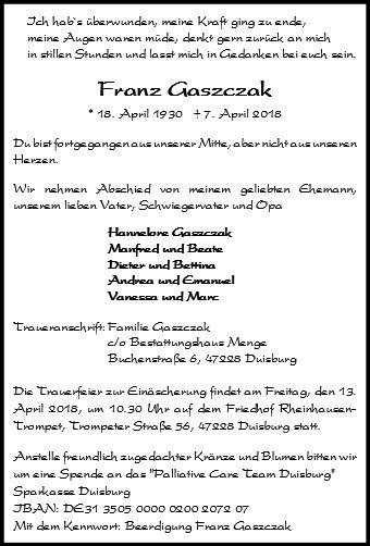in diesen Tagen fühlen wir mit Ihnen und wünschen Ihnen von Herzen, dass Sie aus den glücklichen Erinnerungen Kraft schöpfen, um positiv in die Zukunft zu gehen. Diese Gedenkseite möge Ihnen dabei helfen, Ihre Trauer zu teilen und das Andenken gemeinsam wachzuhalten.