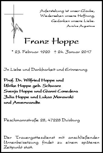 geboren am 23. Februar 1920 in Bewersdorf Krs. Stolpin Pommern gestorben am 24. Januar 2017 in Duisburg