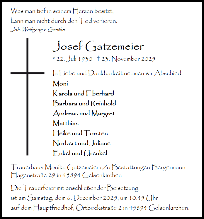 in dieser Zeit des Schmerzes wünschen wir Ihnen Kraft, den Verlust im Kreise Ihrer Liebsten zu verarbeiten. Als Zeichen unserer Anteilnahme und des Gedenkens entzünden wir dieses erste Licht. Möge diese Gedenkseite Ihnen helfen, Erinnerungen zu teilen und so das Andenken gemeinsam wachzuhalten.