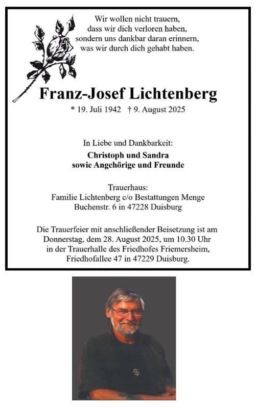 geboren am 19. Juli 1942 in Duisburg gestorben am 9. August 2025 in Xanten