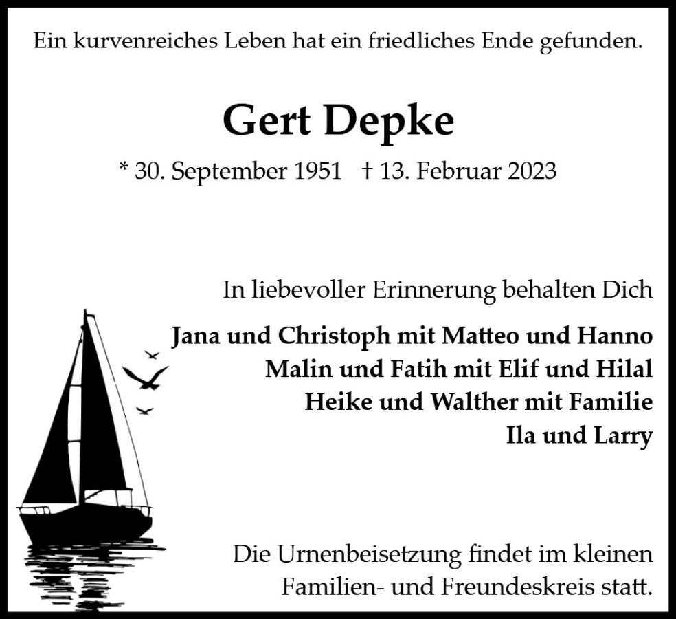 Leider konnten wir nicht mehr sprechen, was wir gerne und oft getan haben. Du bleibst in meinem Herzen!