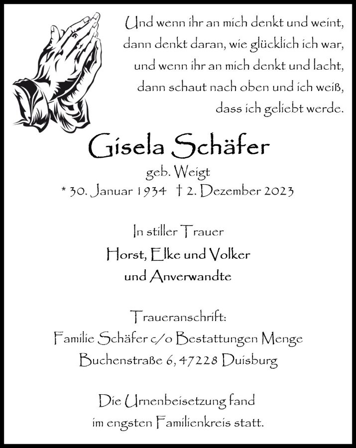 wir wünschen Ihnen von Herzen viel Kraft, dass Sie Menschen um sich haben, die Ihnen in dieser schweren Zeit beistehen und Halt geben. Zusätzlich können Sie auf dieser Gedenkseite Erinnerungen teilen und so das Andenken gemeinsam wachhalten.