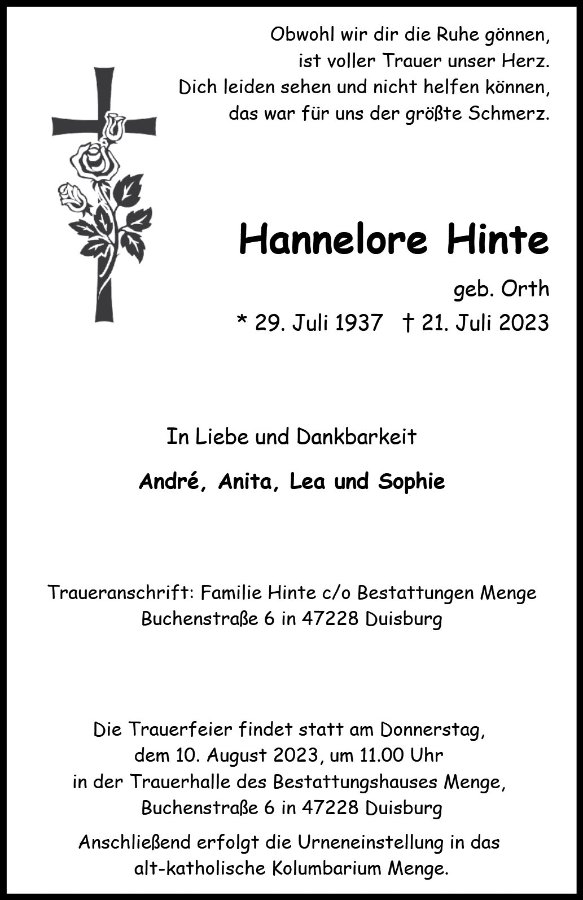 wir wünschen Ihnen für die kommende Zeit viel Kraft und dass es Ihnen gelingt, dankbar auf die positiven Erinnerungen zurückzublicken. Diese Gedenkseite möge Ihnen dabei helfen, Ihre Trauer zu teilen und das Andenken gemeinsam wachzuhalten.