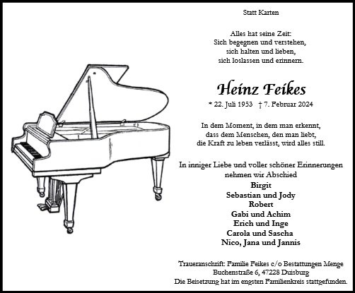 in diesen Tagen fühlen wir mit Ihnen und wünschen Ihnen von Herzen, dass Sie aus den glücklichen Erinnerungen Kraft schöpfen, um positiv in die Zukunft zu gehen. Diese Gedenkseite möge Ihnen dabei helfen, Ihre Trauer zu teilen und das Andenken gemeinsam wachzuhalten.