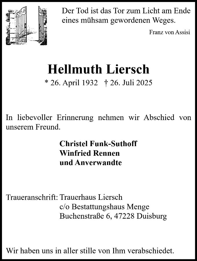 geboren am 26. April 1932 in Duisburg gestorben am 26. Juli 2025 in Duisburg