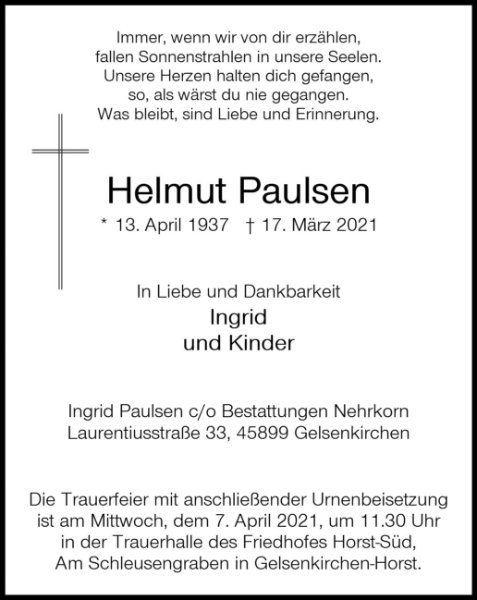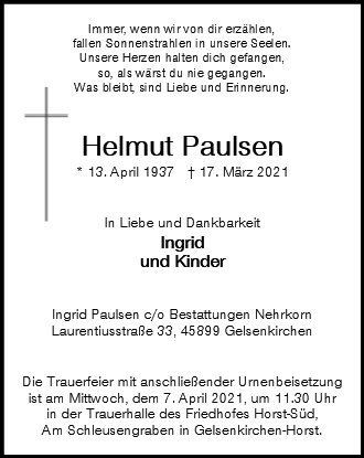 geboren am 13. April 1937 in Gelsenkirchen-Horst gestorben am 17. März 2021 in Essen