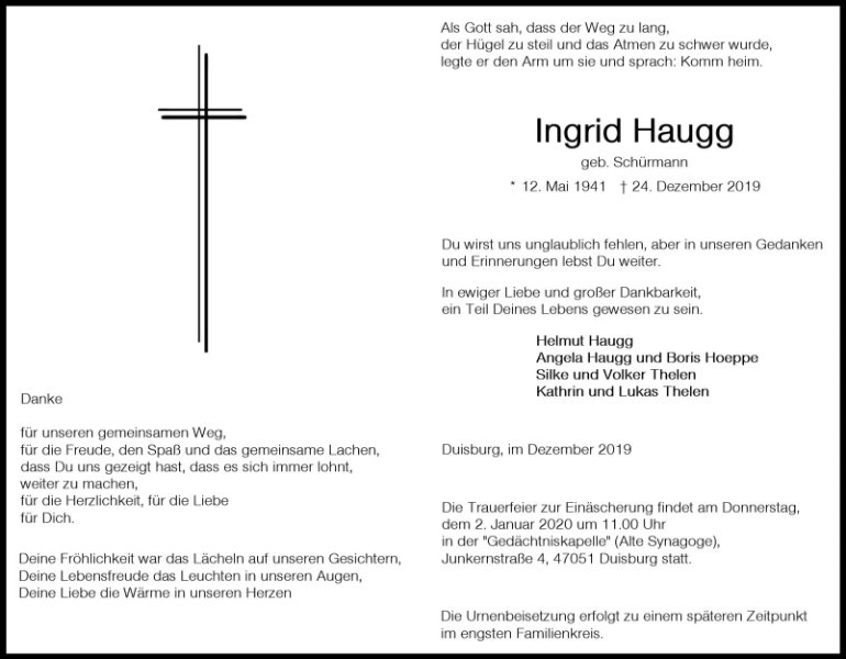 wir wünschen Ihnen von Herzen viel Kraft, dass Sie Menschen um sich haben, die Ihnen in dieser schweren Zeit beistehen und Halt geben. Zusätzlich können Sie auf dieser Gedenkseite Erinnerungen teilen und so das Andenken gemeinsam wachhalten.