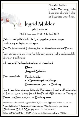 wir wünschen Ihnen für die kommende Zeit viel Kraft und dass es Ihnen gelingt, dankbar auf die positiven Erinnerungen zurückzublicken. Diese Gedenkseite möge Ihnen dabei helfen, Ihre Trauer zu teilen und das Andenken gemeinsam wachzuhalten.