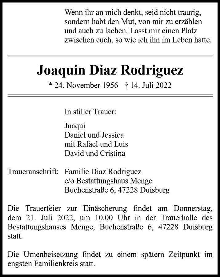 wir wünschen Ihnen für die kommende Zeit viel Kraft und dass es Ihnen gelingt, dankbar auf die positiven Erinnerungen zurückzublicken. Diese Gedenkseite möge Ihnen dabei helfen, Ihre Trauer zu teilen und das Andenken gemeinsam wachzuhalten.