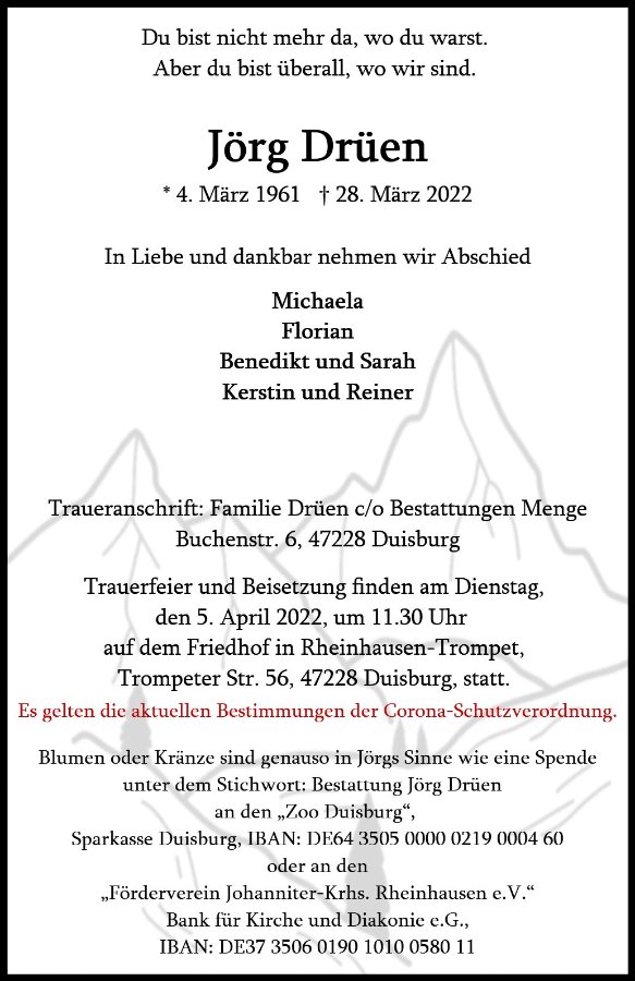 in dieser Zeit des Schmerzes wünschen wir Ihnen Kraft, den Verlust im Kreise Ihrer Liebsten zu verarbeiten. Als Zeichen unserer Anteilnahme und des Gedenkens entzünden wir dieses erste Licht. Möge diese Gedenkseite Ihnen helfen, Erinnerungen zu teilen und so das Andenken gemeinsam wachzuhalten.