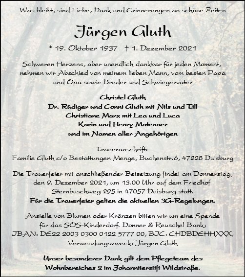 wir wünschen Ihnen für die kommende Zeit viel Kraft und dass es Ihnen gelingt, dankbar auf die positiven Erinnerungen zurückzublicken. Diese Gedenkseite möge Ihnen dabei helfen, Ihre Trauer zu teilen und das Andenken gemeinsam wachzuhalten.