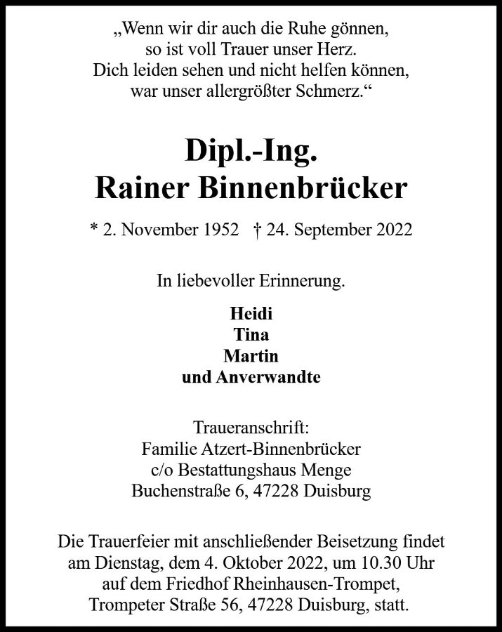 mir war seit geraumer Zeit aufgefallen, dass ich Rainer beim Einkaufen bei Edeka nicht mehr begegnet bin. Es ließ mir keine Ruhe, so dass ich gestern spontan gegoogelt habe. Zu meinem Entsetzen fand ich auf Anhieb die traurige Nachricht. Es tut weh, einen liebensweten Menschen zu verlieren.