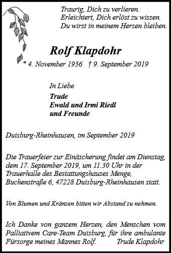 wir wünschen Ihnen für die kommende Zeit viel Kraft und dass es Ihnen gelingt, dankbar auf die positiven Erinnerungen zurückzublicken. Diese Gedenkseite möge Ihnen dabei helfen, Ihre Trauer zu teilen und das Andenken gemeinsam wachzuhalten.