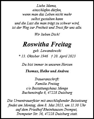wir wünschen Ihnen von Herzen viel Kraft, dass Sie Menschen um sich haben, die Ihnen in dieser schweren Zeit beistehen und Halt geben. Zusätzlich können Sie auf dieser Gedenkseite Erinnerungen teilen und so das Andenken gemeinsam wachhalten.