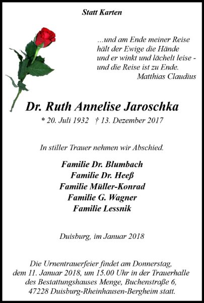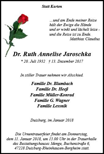 wir wünschen Ihnen für die kommende Zeit viel Kraft und dass es Ihnen gelingt, dankbar auf die positiven Erinnerungen zurückzublicken. Diese Gedenkseite möge Ihnen dabei helfen, Ihre Trauer zu teilen und das Andenken gemeinsam wachzuhalten.