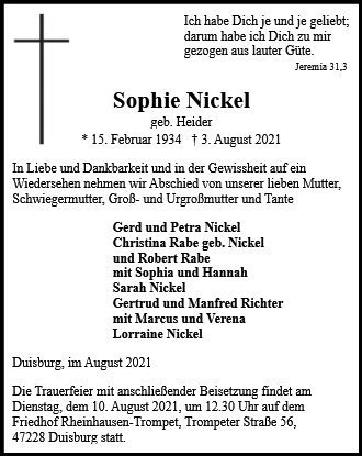 wir wünschen Ihnen für die kommende Zeit viel Kraft und dass es Ihnen gelingt, dankbar auf die positiven Erinnerungen zurückzublicken. Diese Gedenkseite möge Ihnen dabei helfen, Ihre Trauer zu teilen und das Andenken gemeinsam wachzuhalten.