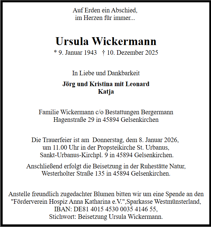 wir wünschen Ihnen von Herzen viel Kraft, dass Sie Menschen um sich haben, die Ihnen in dieser schweren Zeit beistehen und Halt geben. Zusätzlich können Sie auf dieser Gedenkseite Erinnerungen teilen und so das Andenken gemeinsam wachhalten.