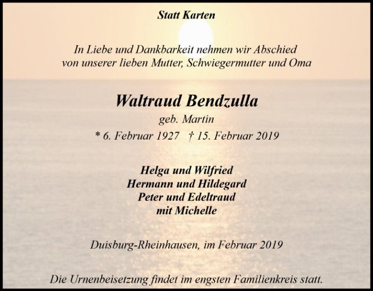 wir wünschen Ihnen für die kommende Zeit viel Kraft und dass es Ihnen gelingt, dankbar auf die positiven Erinnerungen zurückzublicken. Diese Gedenkseite möge Ihnen dabei helfen, Ihre Trauer zu teilen und das Andenken gemeinsam wachzuhalten.