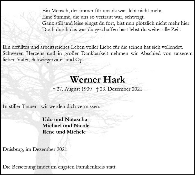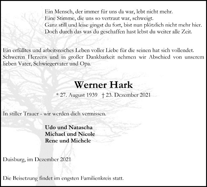 geboren am 27. August 1939 in Geisfeld gestorben am 23. Dezember 2021 in Moers