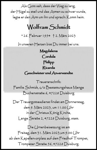 in diesen Tagen fühlen wir mit Ihnen und wünschen Ihnen von Herzen, dass Sie aus den glücklichen Erinnerungen Kraft schöpfen, um positiv in die Zukunft zu gehen. Diese Gedenkseite möge Ihnen dabei helfen, Ihre Trauer zu teilen und das Andenken gemeinsam wachzuhalten.